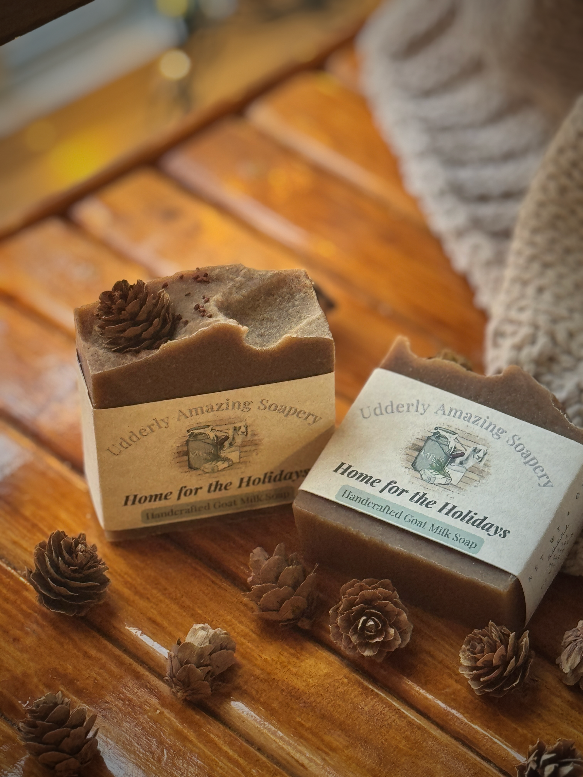 A warm, nostalgic cleanse, our Home for the Holidays Goat Milk Soap is handcrafted with fresh goat milk and a rich blend of oils to capture the true magic of the holiday season. Created for those who cherish family traditions, joyful gatherings, and the simple warmth of being together, this bar feels like stepping into a Christmas memory—comforting, familiar, and full of heart.